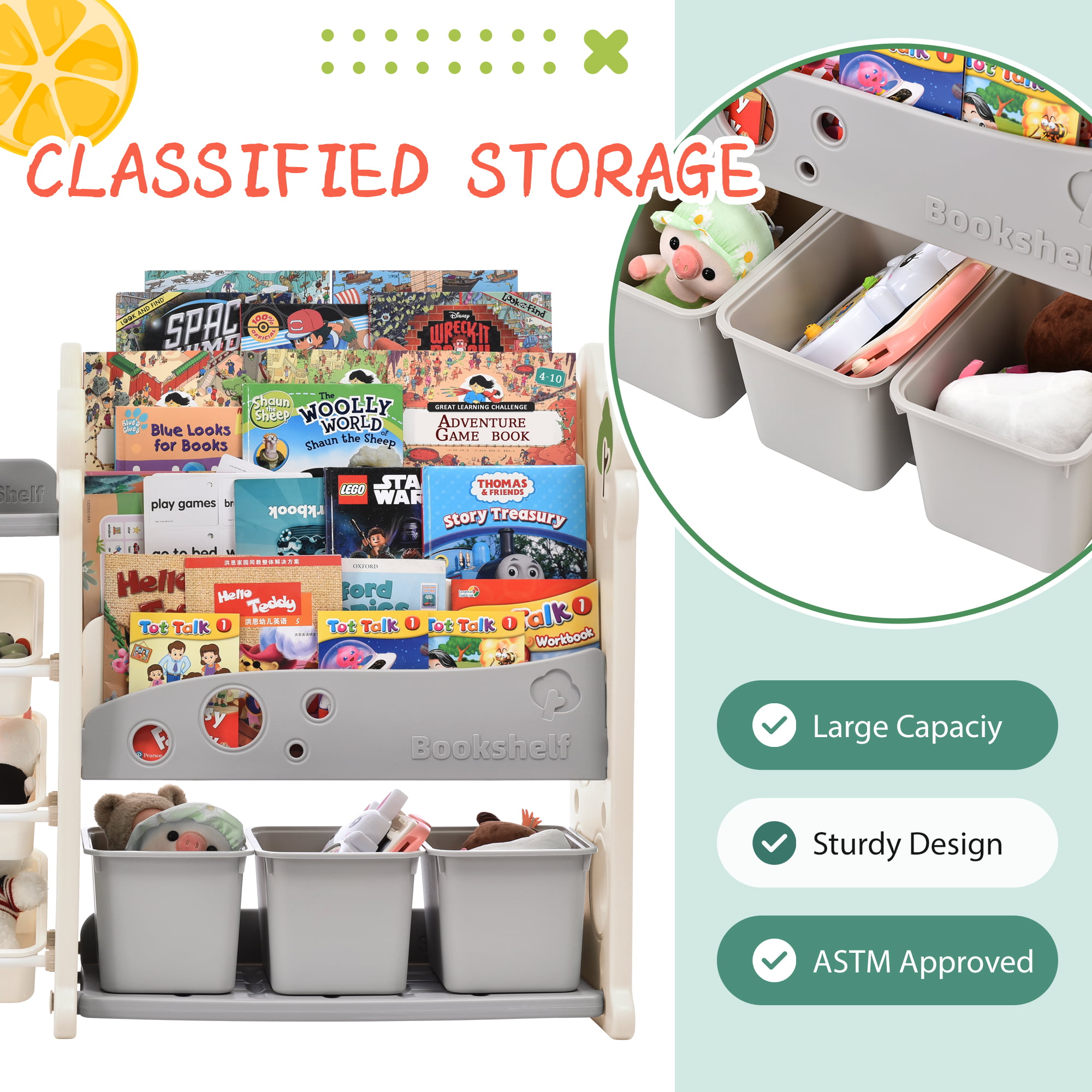 - Full-Score Safety – This bookshelf toy storage organizer specially designed for kids is made of safe and high-quality HDPE material, no need to worry about plastic pollution. All edges of the product have been polished to be rounded to ensure the safety and comfort of your kids.